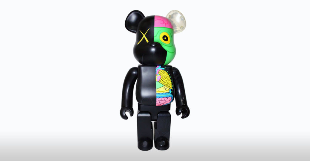 Brian Donnelly—better known as KAWS, the street artist made famous by his small vinyl sculptures—has collaborated with the viral toy brand BE@RBRICK to produce some of the most collectable versions of the teddy bear-like figurine. KAWS was an early artistic partner for the brand, and released this BE@RBRICK (his first ever) in 2002, just one year after the toy company Medicom introduced the character to the public. KAWS’s B@ARBRICK showcased the artist’s signature figure, the “
