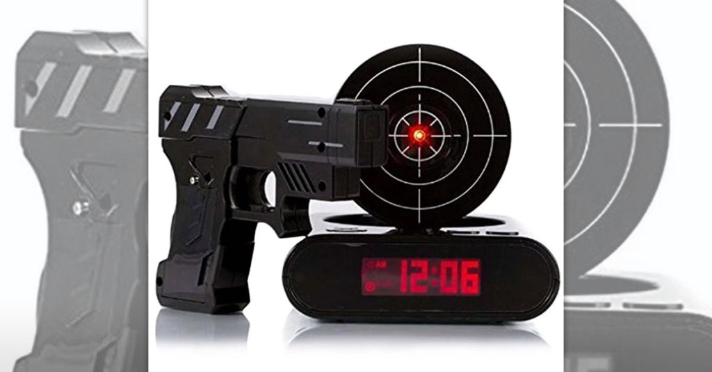 Feel like a secret agent with this unique clock. Simply take aim and fire to project the time onto any surface. Don't settle for a mundane morning routine - add a bit of drama with this weapon against time.