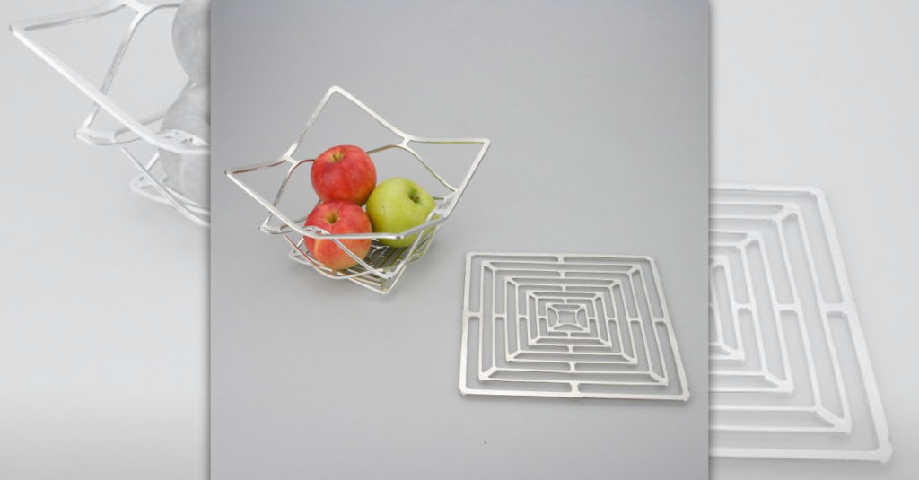 Nousaku is a 400-year-old tin casting company famed for making Buddhist altar fittings and other formal ornaments. It has now turned to modern living and the results of this fusion of tradition and contemporary chic are superb. Kago has a name which derives from "basket", though initially it looks like a flat piece of metal. It's not. It can be bent and shaped like a sculpture. The material is malleable tin, allowing you to customize your own ornaments. This version is a large square that can be reformed into a beautiful silver flower vase for ikebana (Japanese flower arrangement) or even a fruit bowl. Actually the uses for the Kago are almost limitless. For example, it could form a decoration to an indoor plant pot or even a light shade. To see how it is made and how flexible the tin is, watch this video.