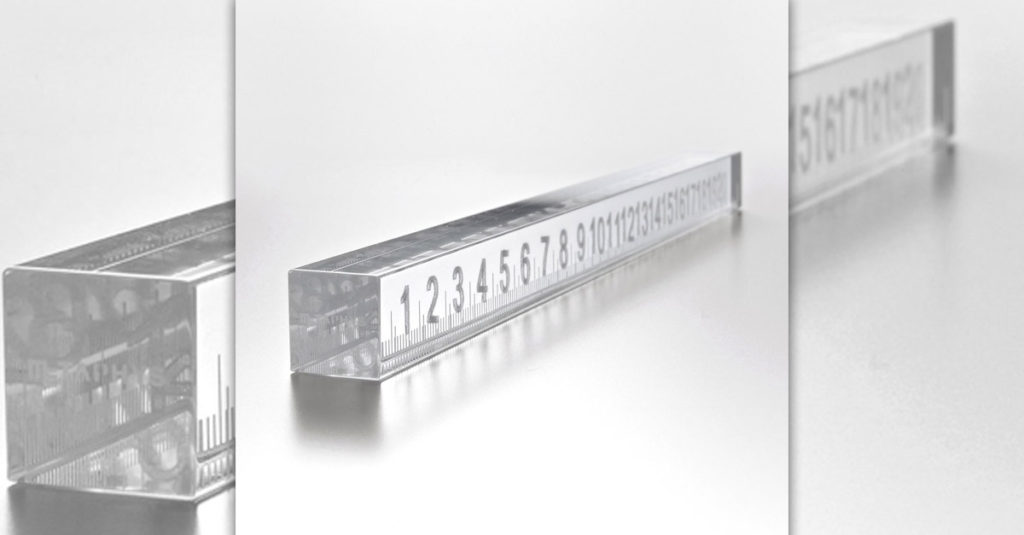 Behold the Kasmi from Metaphys, a designer paperweight in the form of a transparent ruler.