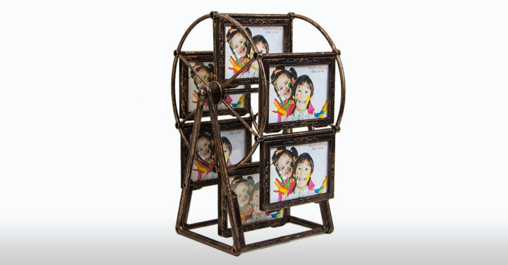 Holds 5 pictures or photos of approximately 3 x 3 inches.