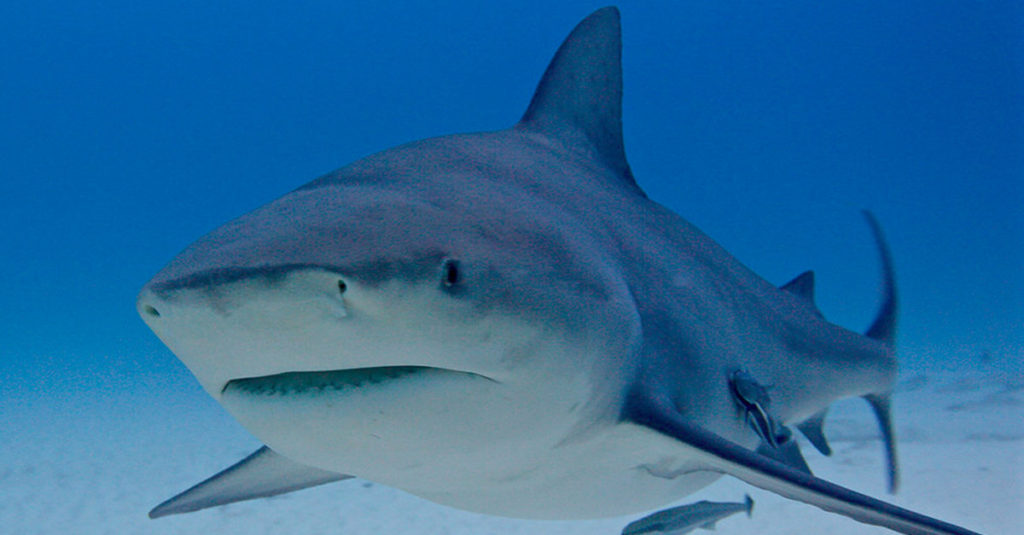 The bull shark, also known as the “Zambezi shark” in Africa, and “Lake Nicaragua shark” in Nicaragua, is a requiem shark commonly found worldwide in warm, shallow waters along coasts and in rivers. (Text source: Wikipedia https://en.wikipedia.org/wiki/Bull_shark)