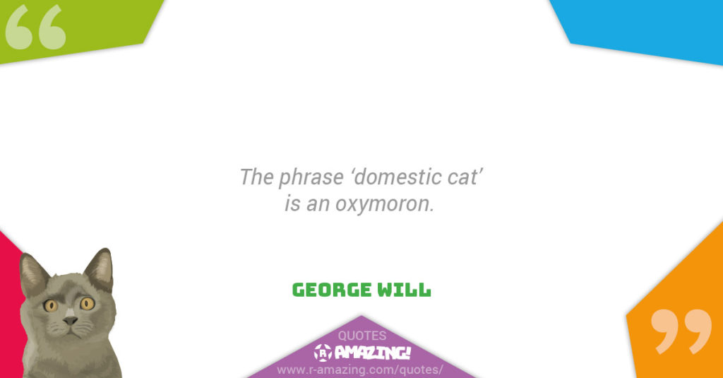 Cat Quote – Oxymoron (16/38) List item Submitted to "Quotes About Cats" Approved by Admin 6th October 2020, 12:11 pm 24 Views 0 Comments “The phrase ‘domestic cat’ is an oxymoron.” George Will Item navigation Previous submission Next submission View full list 0share Facebook Twitter Pinterest LinkedIn Comments Our site Facebook Leave a ReplyCancel replyYou must be logged in to post a comment. Reply with GIF GIPHY App Key not set. Please check settings Loading… 0 See more Previous article Cat Quote – Another (16/38) Next article Cat Quote – Chance (16/38) Written by Admin
