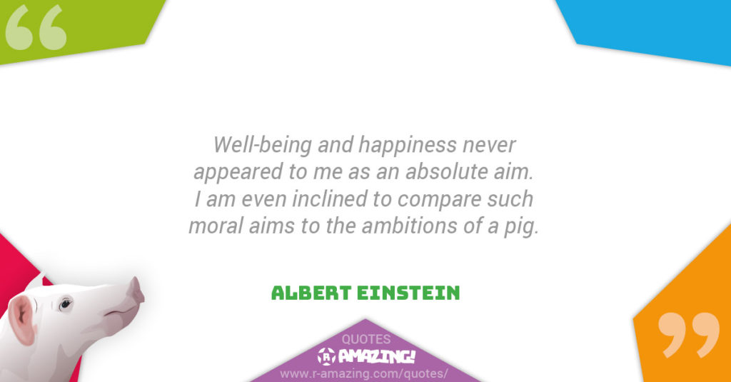Pig Quote – Ambitions (5/22) List item Submitted to "Quotes About Pigs" Approved by Admin 4th October 2020, 7:40 pm 78 Views 0 Comments “Well-being and happiness never appeared to me as an absolute aim.I am even inclined to compare such moral aims to the ambitions of a pig.” Albert Einstein Item navigation Previous submission Next submission View full list 0share Facebook Twitter Pinterest LinkedIn Comments Our site Facebook Leave a ReplyCancel replyYou must be logged in to post a comment. Reply with GIF GIPHY App Key not set. Please check settings Loading… 0 See more Previous article Pig Quote – Affection (5/22) Next article Pig Quote – Fast (5/22) Written by Admin