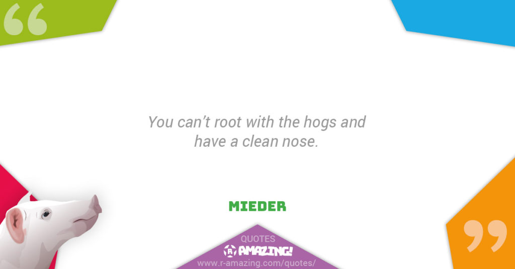 Pig Quote – Nose (7/22) List item Submitted to "Quotes About Pigs" Approved by Admin 4th October 2020, 7:40 pm 76 Views 0 Comments “You can’t root with the hogs and have a clean nose.” Mieder Item navigation Previous submission Next submission View full list 0share Facebook Twitter Pinterest LinkedIn Comments Our site Facebook Leave a ReplyCancel replyYou must be logged in to post a comment. Reply with GIF GIPHY App Key not set. Please check settings Loading… 0 See more Previous article Pig Quote – Fast (7/22) Next article Pig Quote – Clash (7/22) Written by Admin