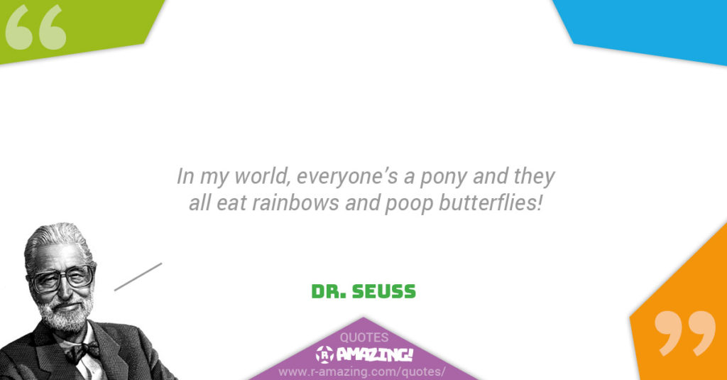 Pooping (12/38) List item Submitted to "Dr. Seuss Quotes" Approved by Admin 29th September 2019, 11:09 am 18 Views 0 Comments “In my world, everyone’s a pony and they all eat rainbows and poop butterflies!” Dr. Seuss Item navigation Previous submission Next submission View full list 0share Facebook Twitter Pinterest LinkedIn Comments Our site Facebook Leave a ReplyCancel replyYou must be logged in to post a comment. Reply with GIF GIPHY App Key not set. Please check settings Loading… 0 See more Previous article Behave (12/38) Next article You (12/38) Written by Admin