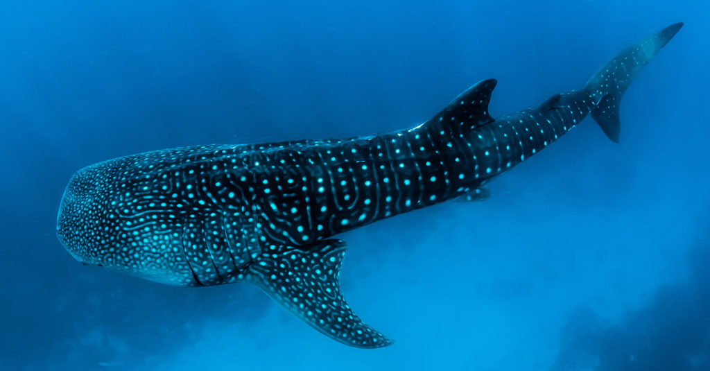 The whale shark is a slow-moving, filter-feeding carpet shark and the largest known extant fish species. The largest confirmed individual had a length of 18.8 m. The whale shark holds many records for size in the animal kingdom, most notably being by far the largest living nonmammalian vertebrate. (Text source: Wikipedia https://en.wikipedia.org/wiki/Whale_shark)